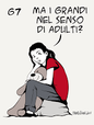 Come si fa a convocare un meeting che si autodefinisce dei Grandi e ad escludere la Russia, la seconda potenza militare del mondo e con un apparato di intelligence tra i più efficienti, proprio quando un tema prioritario è quello del terrorismo. Come si fa a pensare che l’Italia, con tutto l’affetto per il nostro paese e l’orgoglio di appartenenza, possa far parte dei 7 Grandi della terra ? Forse perché ha il debito pubblico, in rapporto al Pil più grande del mondo dopo il Giappone! Ed è mai possibile pensare che il paese del sol levante in stagnazione cronica, con un peso decrescente sulla scena mondiale possa rappresentare «da solo» l’Asia , il continente dove negli ultimi trent’anni si è spostato il baricentro dell’economia mondiale? Oppure, c’è da domandarsi, che peso può avere il Canada oggi, la cui popolazione è poco più di quella della capitale cinese e , malgrado il simpatico e progressista presidente Trudeau, il suo valore aggiunto all’economia mondo è inferiore a quello della California.