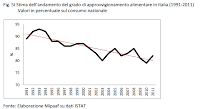 A questi dati, tenuti nascosti sapientemente all'opinione pubblica (ne avete mai sentito parlare al TG1, al TG3, a Ballarò, a Otto e mezzo?) se ne aggiunge un altro ancor più preoccupante: l'Italia è il terzo paese in Europa ed il quinto nel mondo nella classifica del deficit di suolo. In sostanza ci mancano 49 milioni di ettari per coprire il nostro intero fabbisogno che è pari a 61 milioni di ettari. Siamo destinati ad essere sempre più dipendenti dalla produzione di terreni di altri paesi. Il buon senso del buon padre o madre di famiglia dovrebbe portarci a fermare per decreto ed immediatamente la cementificazione ed il consumo di suolo, a bonificare le aree compromesse dal cemento e dai veleni, ad incentivare seriamente il ritorno alla coltivazione delle terre abbandonate. Ma purtroppo il buon senso e l'interesse collettivo sono spesso in contraddizione con gli interessi dei pochi e soliti noti...