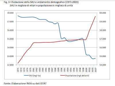 Che cosa è fondamentale per un popolo, per le persone che vivono su un determinato territorio? Che cosa è indispensabile alla sopravvivenza dei cittadini? Il cibo. E che cosa è accaduto al nostro paese? È accaduto che dal 1971 al 2010 ha perso 5 milioni di ettari di Superficie Agricola Utilizzata (SAU). Questo dato è dovuto a due fenomeni: l'abbandono delle terre e la cementificazione.