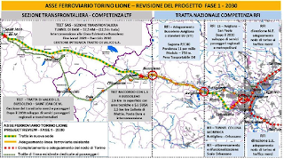 Il rapporto Verifica del modello di esercizio presenta in termini descrittivi le tappe di questa evoluzione e la cosiddetta “fasizzazione” ovvero la definizione delle opere da realizzare nella Fase 1-2030. Nella figura seguente è rappresentato il contenuto di questa prima fase. Altre opere, come la gronda merci di Torino,o il tunnel dell’Orsiera tra Susa e la Chiusa di S. Michele, sono rimandate a dopo il 2035 e comunque solo se la saturazione delle linee in esercizio le renderà necessarie. Il rapporto Verifica del modello di esercizio è un documento consapevole, dal punto di vista tecnico, che la realizzazione della Torino Lione ha senso solo in una prospettiva di potenziamento della rete ferroviaria destinata alle merci e indica una serie di interventi di potenziamento, adeguamento, raccordo con le altre linee in fase di realizzazione, in primo luogo il Terzo valico dei Giovi e da lì il collegamento con la portualità genovese.